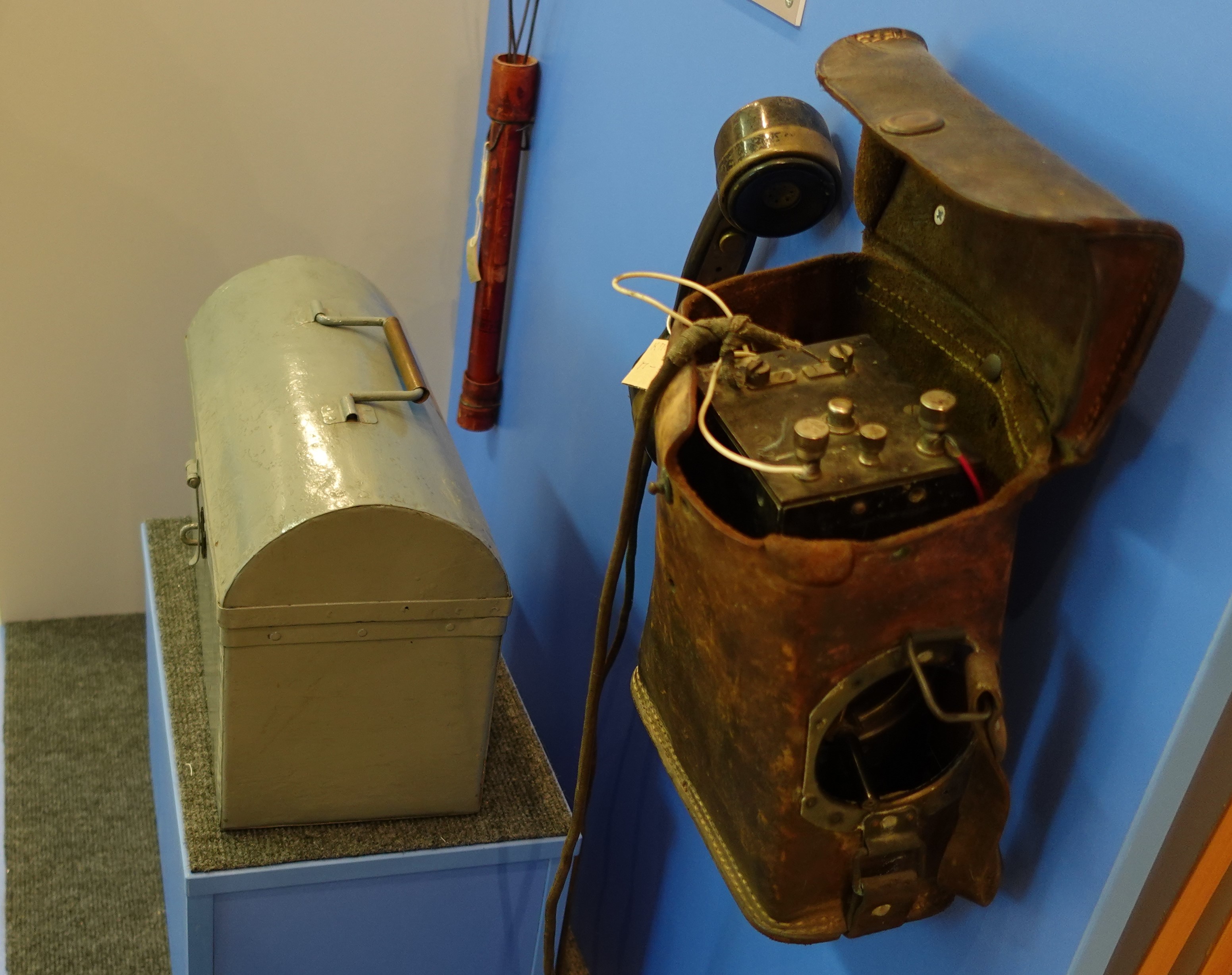 Факел-свеча, сундучок и полевой телефон.