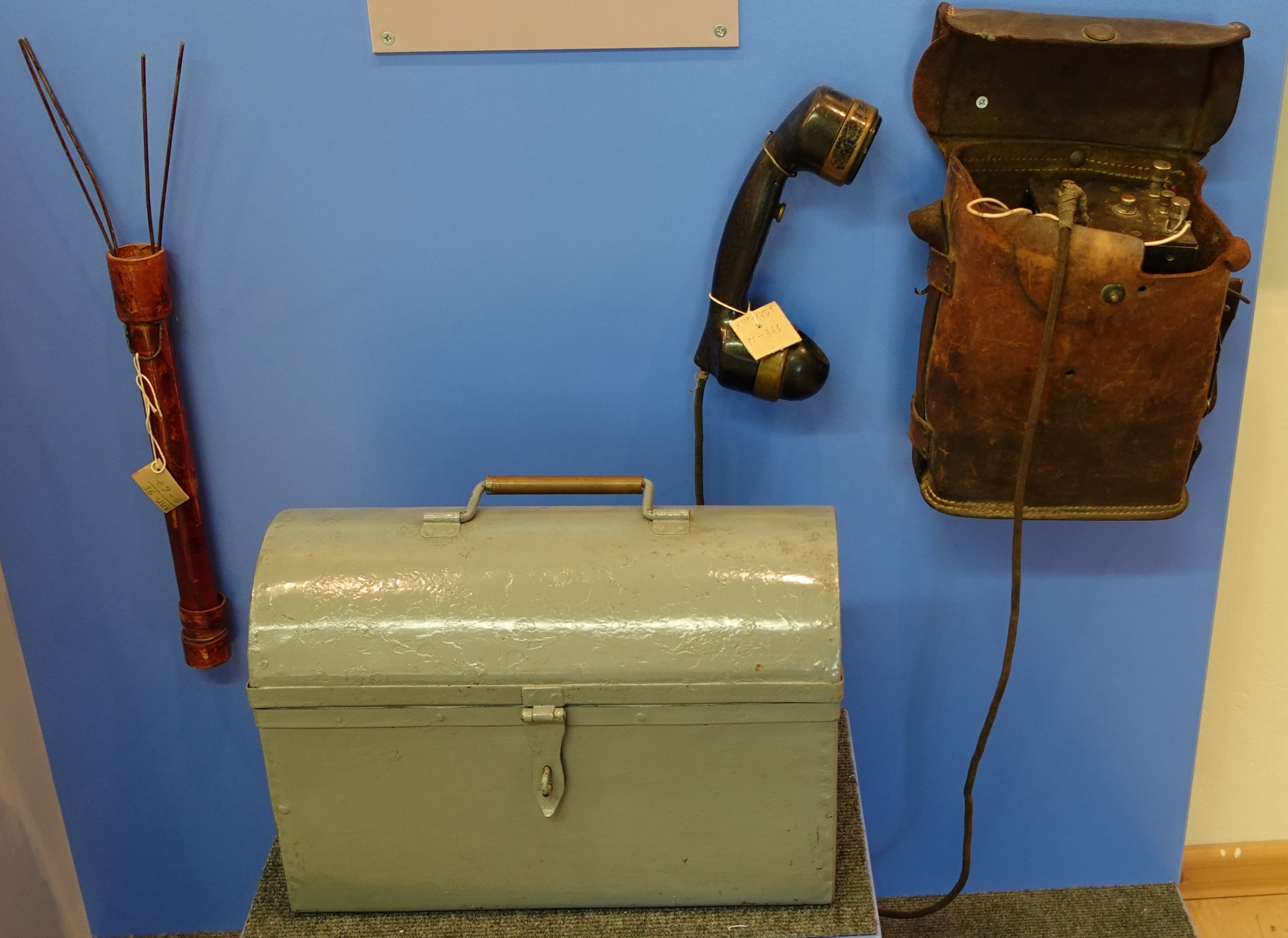 Факел-свеча, сундучок и полевой телефон.