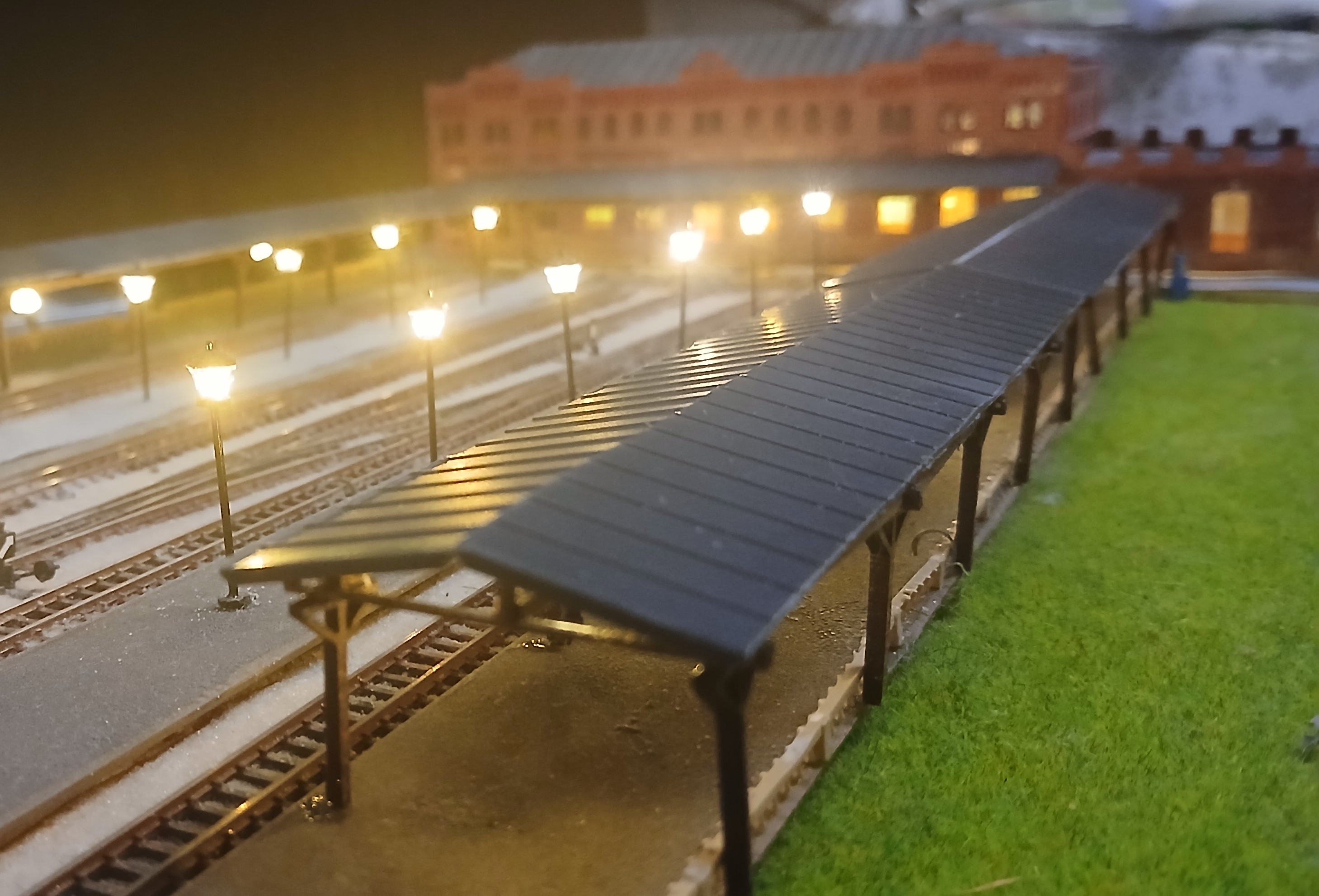 Старый вокзал в центре Таганрога - уникальное здание с многогранной полуторавековой историей. За прошедшие годы окружающее пространство изменилось до неузнаваемости. Неизменным осталось лишь само здание. Уже имея в свое арсенале постоенный макет этой станции, отражающий более-менее современную эпоху (начало 80-х годов), возникло желание обратиться к временам более ранним, тем более, что тогда станция была оборудована ажурным П-образным деревянным навесом, закрывающим от непогоды две бокоовые пассажирские платформы, а также водоемное здание, выполненное в готическом стиле не было перестроено. Ввиду ограниченности свободного пространства обратился к уже освоенному типоразмеру Z, масштаб уменьшения 1:220. Здание сделано из картона и бумаги. Деревянный навес из аутентичного материала. Детали были изготовлены методом лазерной резки. Фонари на платформе от фирмы "Sunshine model" Китай, декор самодельный при помощи матералов, купленных в магазинах сети "Леонардо". Для основы макета взят лист жесткого пенополистирола толщиной 12 мм. и размером 100х40 см. Такой формат вполне позволяет разместить макет на отдельной настенной застекленной полке. Путевая схема отражает развите станции по состоянию на начало ХХ века. Один из этапов процесса посторойки изображен на фото выше. Далее приведены фото готового макета с подвижным составом I-й эпохи. Использованы серийно выпускаемые модели фирмы "Marklin". Имитации водоразборных колонок полностью созданы с нуля. Линейно-путевое здание и водоемное здание выполнены из плотной бумаги. Управление макетом бепроводное на основе разарботанной мною системы, с которой можно подродно ознакомиться здесь: Система беспроводного управления аналоговыми макетами